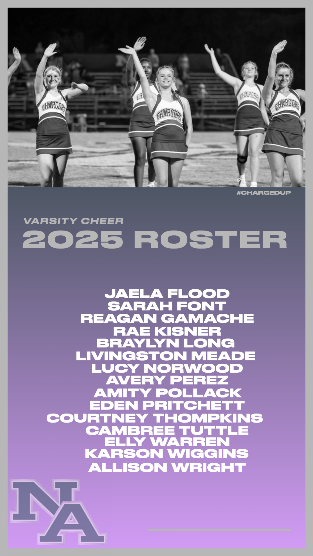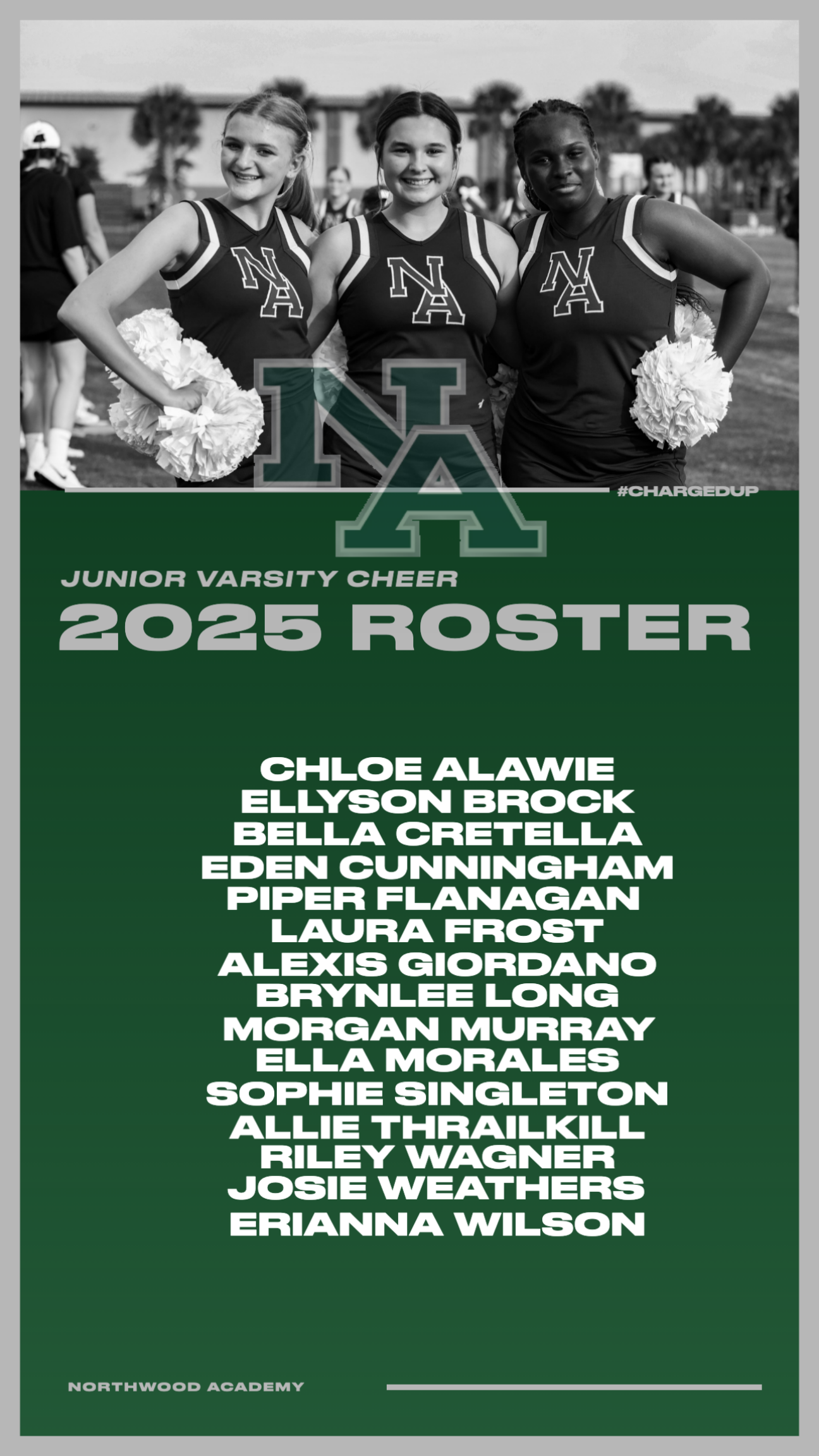 Northwood Academy About Who We Are Administration Business Office Faculty & Staff Pre-school Directory Lower School Directory Upper School Directory Contact Us Northwood Church Academics Upper School AP Capstone Diploma Lower School Pre-school Pre-K Early Ed Two Toddler Infant Resources Ways We Serve Technology Guidance National Organizations Athletics Athletics Teams Archery Cheerleading Cross Country Boys Basketball Girls Basketball Baseball Fishing Football Golf Softball Boys Soccer Girls Soccer Swim Tennis Track and Field Volleyball Wrestling Athletic Trainer Charger Club Lower School Resources Student Life Upper School Lower School Arts Chapel Ways We Serve Resources Resources Family Family Portal Northwood Family App Alumni Staff (Log In) Admissions Why Northwood? Admissions Process Apply to Northwood Tuition & Fees Home / Athletics / Teams / Cheerleading VARSITY CHEER ROSTER Roster JV Cheer Roster Athletics Teams Archery Cheerleading Cross Country Boys Basketball Girls Basketball Baseball Fishing Football Golf Softball Boys Soccer Girls Soccer Swim Tennis Track and Field Volleyball Wrestling Athletic Trainer Charger Club Lower School Resources Coaches Christy Christmas, Head Coach Varsitycchristmas@northwoodacademy.com NA Box Office Visit the NA Box Office to purchase your Athletic Event tickets! Support Cheer Support the Cheer Team with your donation! Donate HereBecome a Sponsor