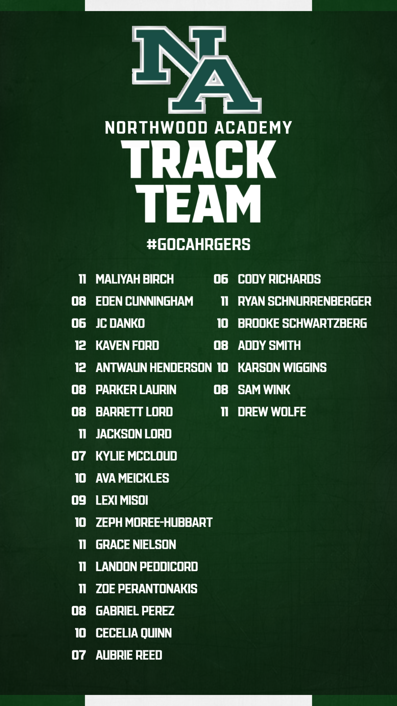 Northwood Academy About Who We Are Administration Business Office Faculty & Staff Preschool Directory Lower School Directory Upper School Directory Contact Us Northwood Church Academics Upper School AP Capstone Diploma Lower School Preschool Pre-K Early Ed Two Toddler Infant Resources Ways We Serve Technology Guidance National Organizations Athletics Athletics Teams Archery Cheerleading Cross Country Boys Basketball Girls Basketball Baseball Fishing Football Golf Softball Boys Soccer Girls Soccer Swim Tennis Track and Field Volleyball Wrestling Athletic Trainer Charger Club Lower School Resources Student Life Upper School Lower School Arts Chapel Ways We Serve Resources Resources Family Family Portal Northwood Family App Alumni Staff (Log In) Admissions Why Northwood? Admissions Process Apply to Northwood Tuition & Fees Priority Reenrollment for Current Students Home / Athletics / Teams / Track and Field Schedule Roster Athletics Teams Archery Cheerleading Cross Country Boys Basketball Girls Basketball Baseball Fishing Football Golf Softball Boys Soccer Girls Soccer Swim Tennis Track and Field Volleyball Wrestling Athletic Trainer Charger Club Lower School Resources Support Track & Field Support the Track & Field Team with your donation! Donate Here Coaches Keith Bolus, Head Coachkbolus@northwoodacademy.com NA Box Office Visit the NA Box Office to purchase your Athletic Event tickets!